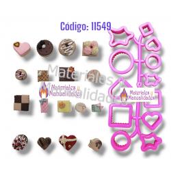Molde Cortador Plástico Bases surtidas para apliques o llaveros; circular, cuadrado, corazón y ventanas o puertas para modelar Pastillaje y Porcelanicrón Fondant.