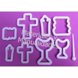 Set 8 moldes Molde Cortador plástico formas de Bautizo Primera Comunión para tus Recordatorios en masa o pasta flexible, figuras en muffins, con fondant, decoración de tartas / pastillaje y porcelanicrón