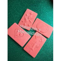 También se denominan: plantillas rígidas para marcar masas, estampar pasta y realizar repujado en lámina, texturizar pastillaje, tarjetería en pergamino, estampar fondant, en material plástico